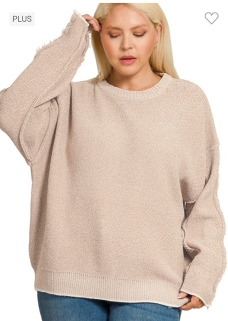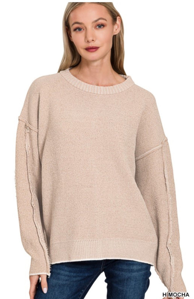 One of the softest sweaters of the season! This exposed seam sweater features a round neck and will be at the top of your fall rotation!
